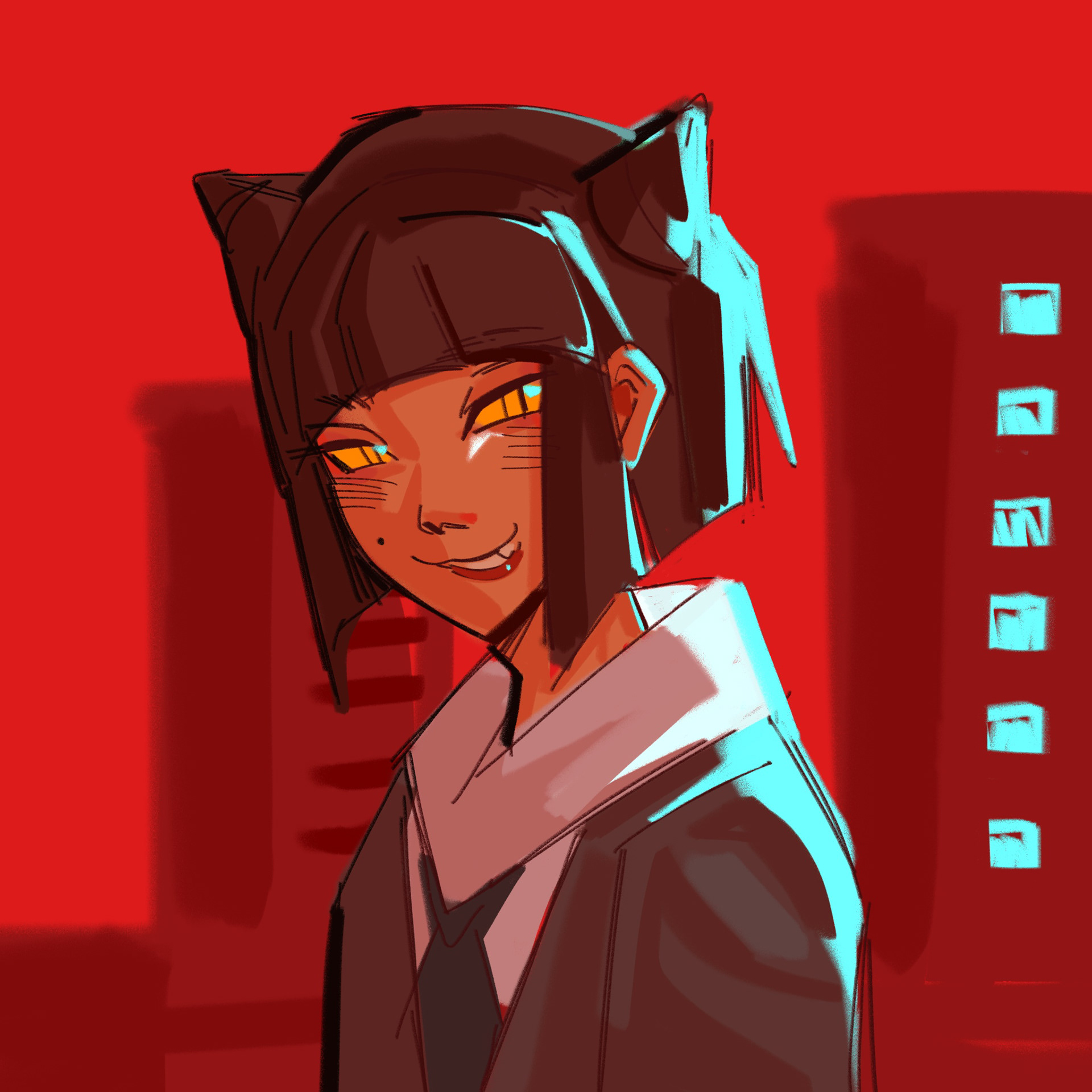 Original illustration of a girl in front of city lights.